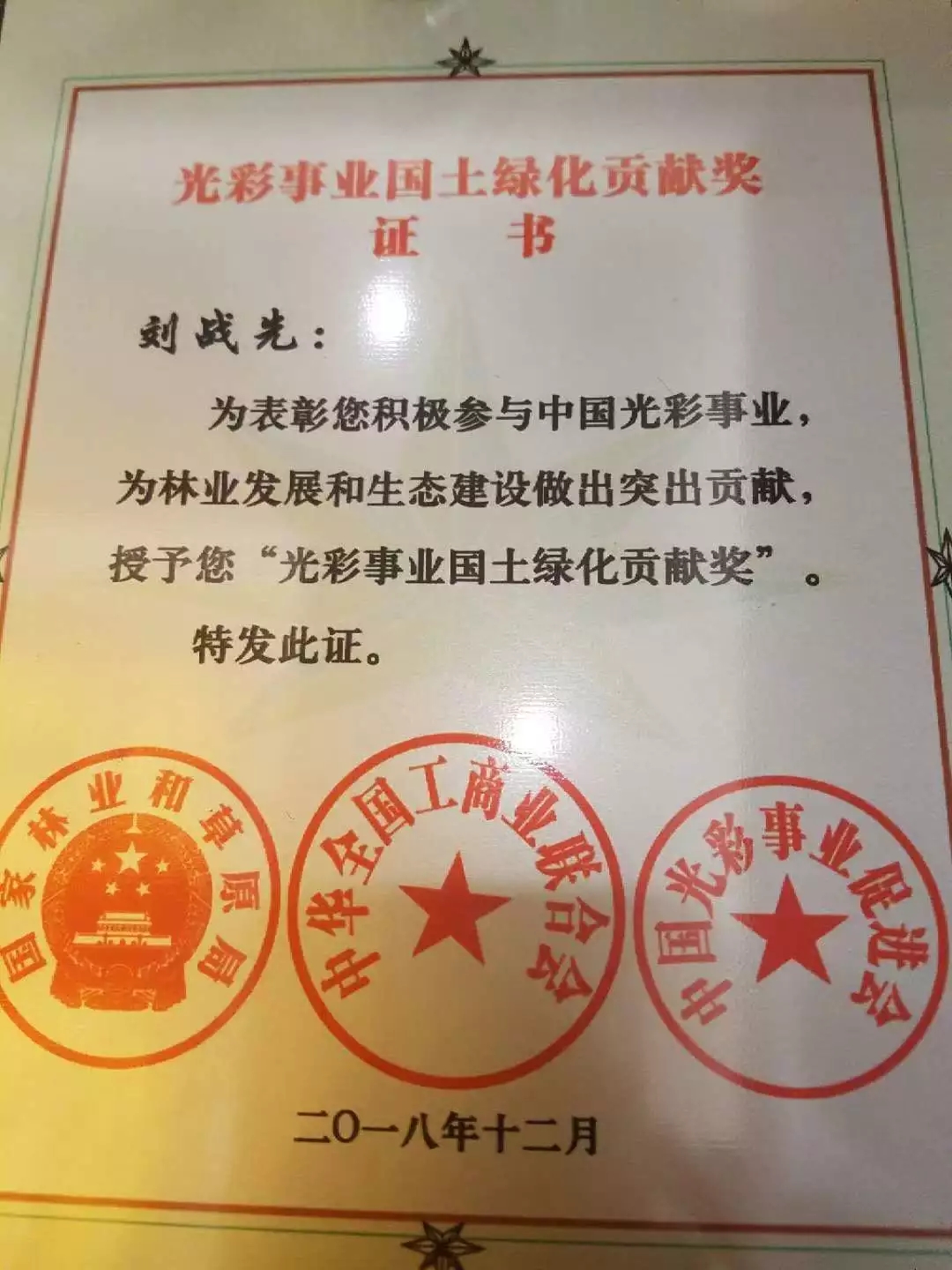 大会上,公司董事长刘战先等40位民营企业家被国家工商联、国家林业和草原局联合