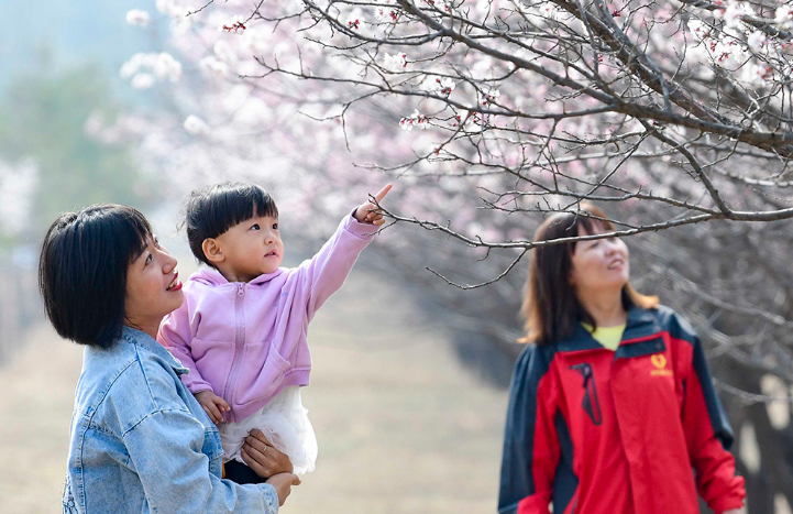2021年4月9日,游客在鄂尔多斯市准格尔旗第六届乡村旅游杏花季活动中赏花。(摄影:王正)